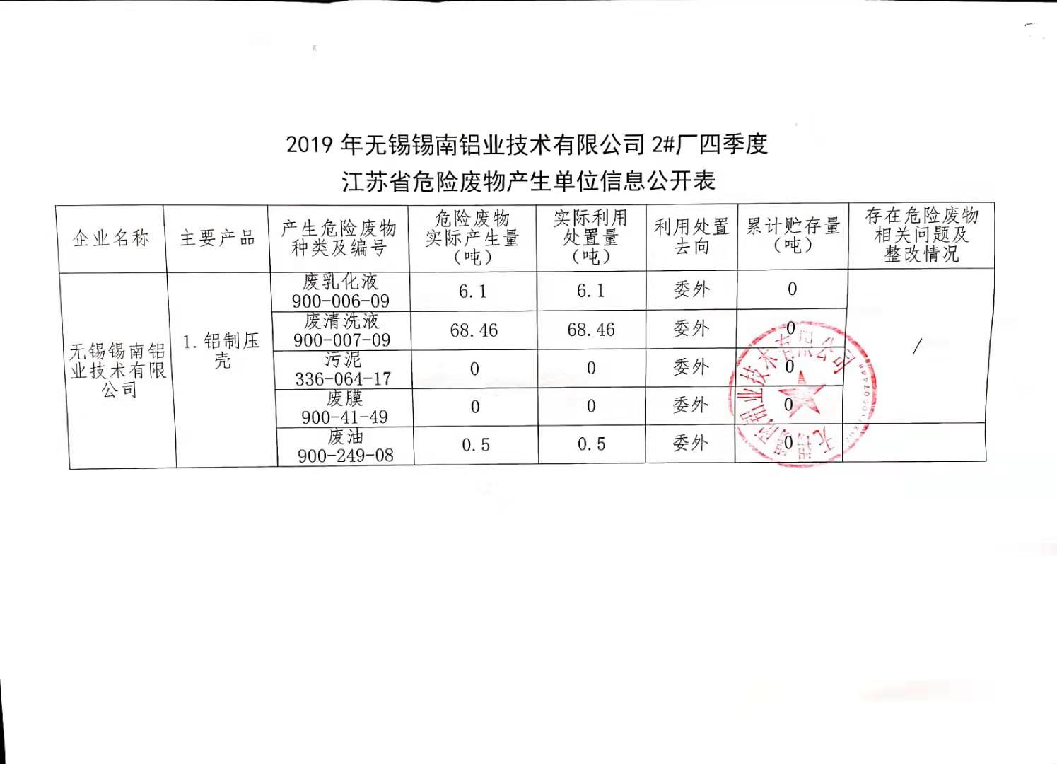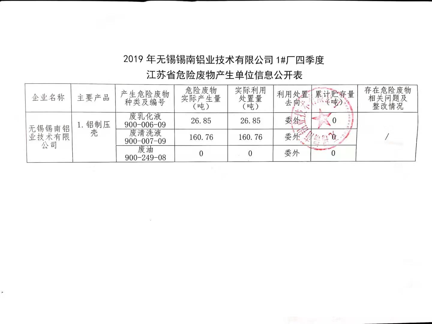 江蘇省危險廢物產(chǎn)生單位信息公開表(四季度)